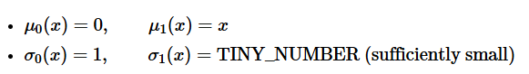x1에대한 평균과 표준편차를 사용하여 정규분포로 가정, 와 에 대한 조건을 아래와 같이 사용한다.