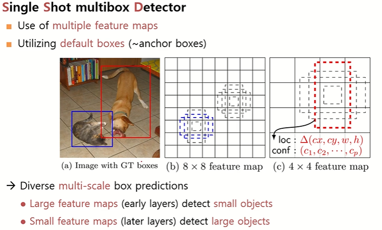 - YOLO v1: 98개만 예측 → SSD는 훨씬 많은 후보.