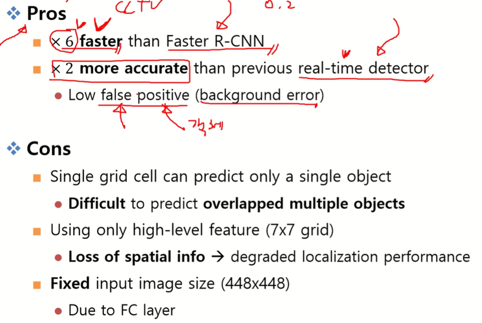 - 단점: 해상도(7×7)가 너무 작아서 작은 물체 검출에 한계.