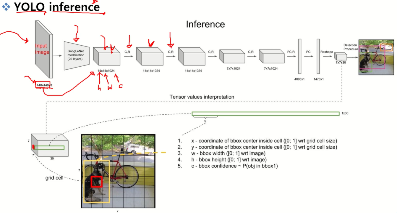 - YOLO v1: 448×448 입력 → CNN → 마지막 7×7 Feature Map 사용.