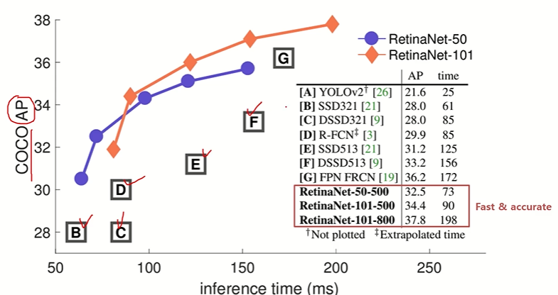 기존 One-Stage Detector(YOLO, SSD)보다 AP(정확도) 크게 향상