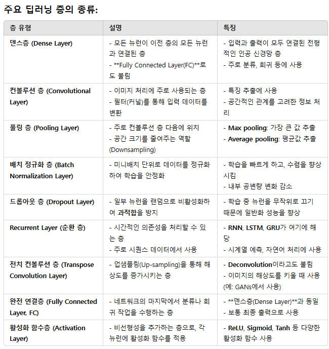 - 다양한 데이터를 학습하면서, 복잡한 패턴이나 규칙을 스스로 발견할 수 있습니다.