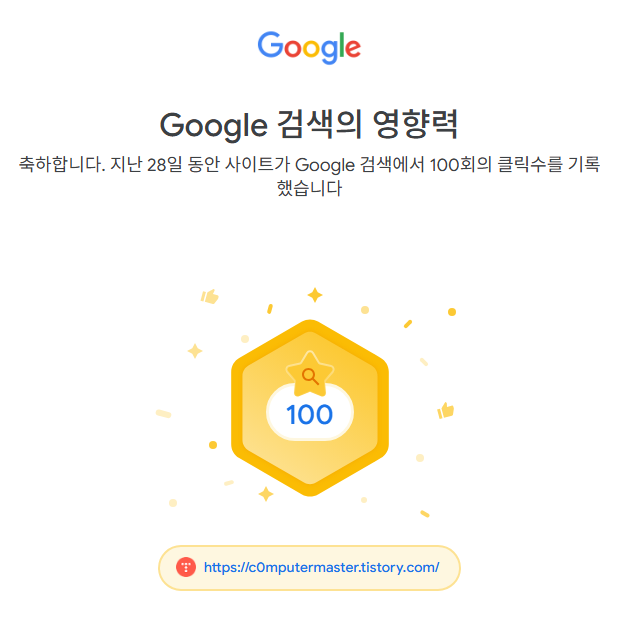 Google 검색에서 블로그가 100회 클릭수를 기록했습니다
