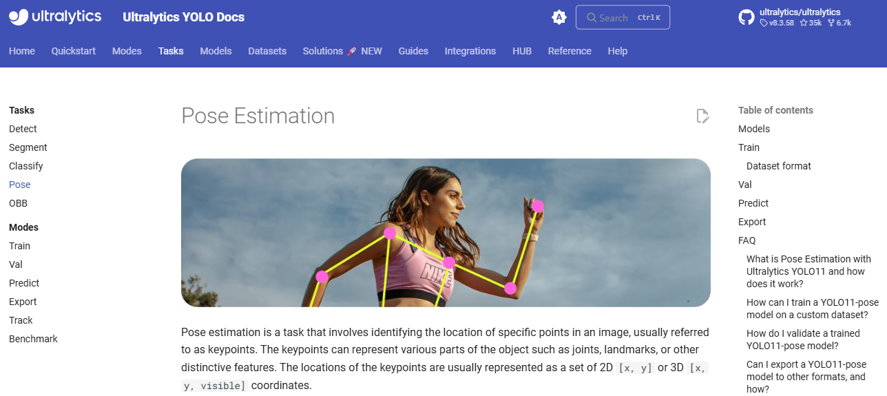 여러 자세 추정 모델을 경험 해보기 위해 우선 접근성이 쉬웠던 Ultralytics에 YOLO11 Pose모델을 사용해보았다.