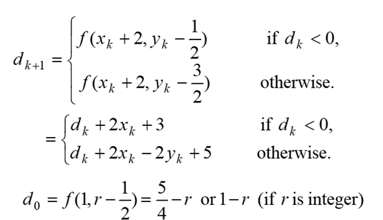 d0 = 2* x 증가량 * f(x0+1, y0+1/2) = 2(y 증가량)x0 + 2(y 증가량) - 2(x 증가량)*y0 - 2(x 증가량)*(1/2) + 2b(x 증가량)