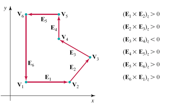 v1 ~ v6를 지나 다시 돌아오는 백터에서 각 E의 외적이 음수인지 양수인지 음수가 나오는 친구가 하나라도 있으면 콘케이브한 도형