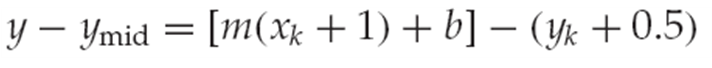 2* x 증가량 * f(x+1, y+1/2) = 2(y 증가량)x + 2(y 증가량) - 2(x 증가량)*y - 2(x 증가량)*(1/2) + 2b(x 증가량)