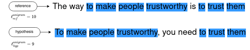 - 여러 개의 정답이 있을 수 있으므로, BLEU를 계산할 때 중복된 Reference도 고려하여 계산함.