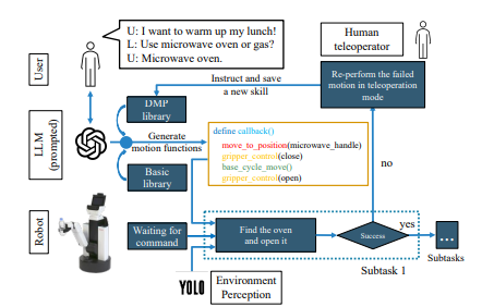 그럼에도 불구하고, LLM 기반 로봇 시스템의 기존 연구는 주로 간단하고 반복적인 작업 계획에 초점을 맞추고 있습니다. 예를 들어, 물건을 집어 놓는 작업은 잘 수행되지만, 음식을 데우거나 굽는 등 고급 추론과 궤적 계획을 요구하는 복잡한 작업은 충분히 다루어지지 않았습니다. 이러한 한계는 주로 두 가지 문제에서 발생합니다.