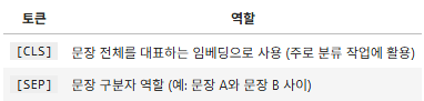 | 사전 훈련 | MLM, NSP를 통해 언어 감각 익힌다 | 전반적인 언어 이해 능력 학습 |