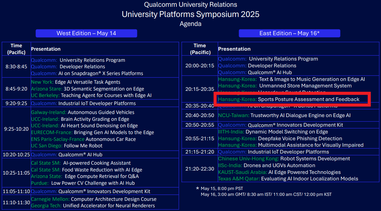 한성대학교 퀄컴 심포지엄 참가팀으로 선발되어 Qualcomm University Platforms Symposium 2025에서 우리의 어플리케이션을 발표를 하였습니다