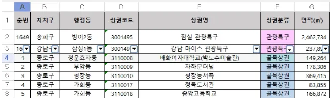 seoul_excel_v4.xlsx (상권코드 정보) 파일과 병합 ( https://golmok.seoul.go.kr/introduce.do )
