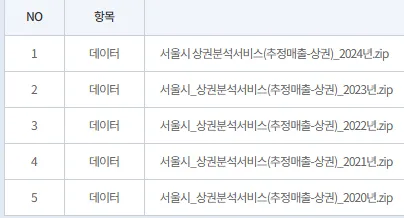 - 연도별 파일: 서울시_상권분석서비스(추정매출-상권)_2020~2024.csv 총 5개