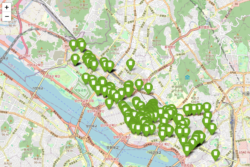 - folium의 HeatMap을 사용하여 지도 위에 쓰레기 유발 상권을 표시