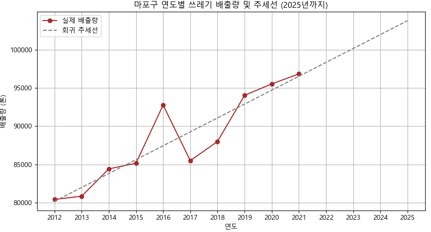 연도별 추세 분석을 통한 적절한 쓰레기통 개수 예측