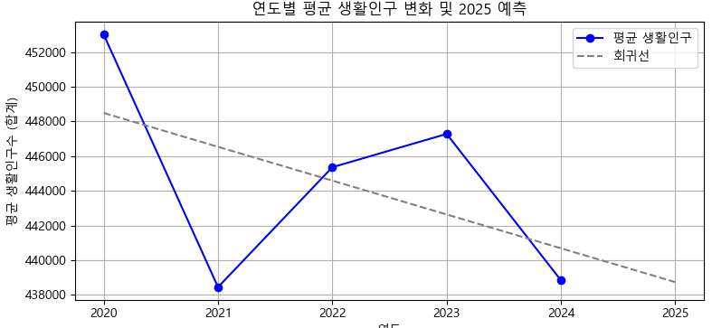 - 각 항목별로 선형 회귀를 적용하여 2025년의 생활인구를 예측